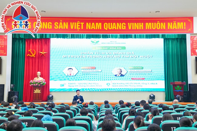 Nhằm cập nhật kiến thức và nâng cao năng lực chuyên môn cho đội ngũ y bác sĩ và học viên của Bệnh viện, ngày 04/12/2025, Bệnh viện Nhi Trung ương đã tổ chức buổi sinh hoạt khoa học với chuyên đề “Phân tích và đánh giá di truyền trong ngừng tim đột ngột”.