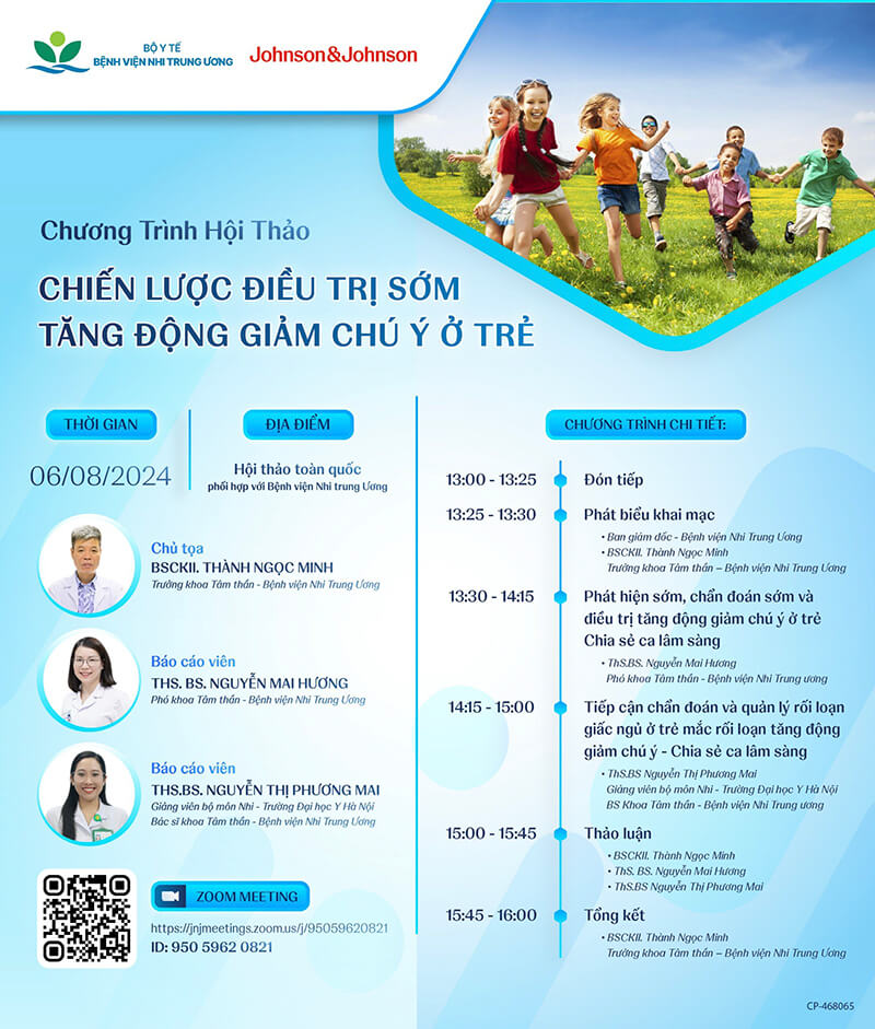 Viện Đào tạo và Nghiên cứu Sức khỏe Trẻ em – Bệnh viện Nhi Trung ương xin trân trọng thông báo và kính mời các cán bộ, nhân viên y tế tham dự Hội thảo khoa học: Chiến lược điều trị sớm tăng động giảm chú ý ở trẻ