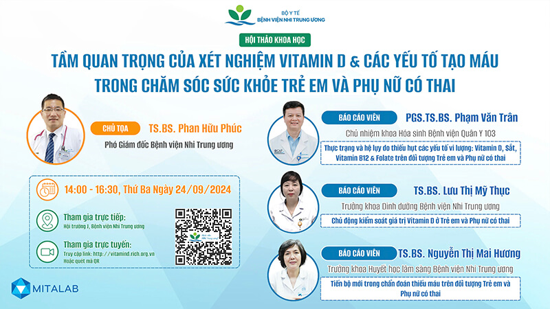 Viện Đào tạo và Nghiên cứu Sức khỏe Trẻ em – Bệnh viện Nhi Trung ương xin trân trọng thông báo và kính mời các cán bộ, nhân viên y tế tham dự buổi Hội thảo khoa học: Tầm quan trọng của xét nghiệm Vitamin D & các yếu tố tạo máu trong chăm sóc sức khỏe trẻ em và phụ nữ có thai.