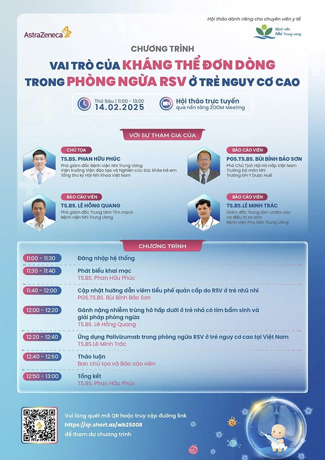 [Thông báo] Hội thảo khoa học trực tuyến: Vai trò của kháng thể đơn dòng trong phòng ngừa RSV ở trẻ nguy cơ cao