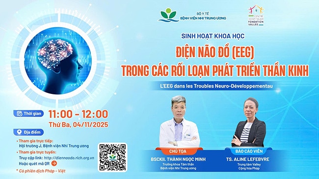 Viện Đào tạo và Nghiên cứu Sức khỏe Trẻ em, Bệnh viện Nhi Trung ương xin trân trọng thông báo và kính mời các cán bộ, nhân viên y tế tham dự buổi Sinh hoạt khoa học: Điện não đồ (EEG) trong các rối loạn phát triển thần kinh.