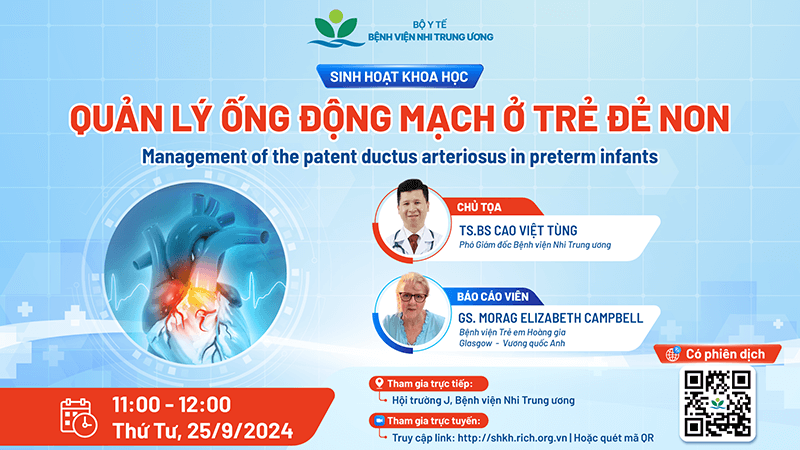 [Thông báo] Sinh hoạt khoa học: Quản lý ống động mạch ở trẻ đẻ non