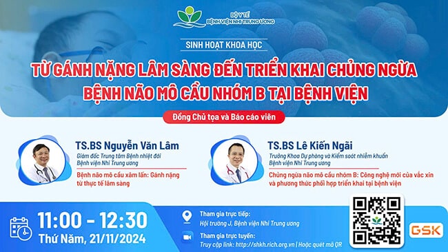 Viện Đào tạo và Nghiên cứu Sức khỏe Trẻ em – Bệnh viện Nhi Trung ương xin trân trọng thông báo và kính mời các cán bộ, nhân viên y tế tham dự buổi Sinh hoạt khoa học: Từ gánh nặng lâm sàng đến triển khai chủng ngừa bệnh não mô cầu nhóm B tại bệnh viện.