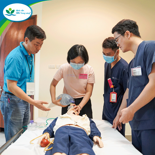 Nhằm phát triển nguồn giảng viên đáp ứng tiêu chuẩn về trình độ, năng lực chuyên môn, kinh nghiệm cũng như kỹ năng sư phạm y học trong công tác đào tạo cấp cứu Nhi khoa; từ đó có thể hướng dẫn, đào tạo cho toàn thể y bác sĩ tại Bệnh viện và các bệnh viện Nhi, Sản Nhi trong cả nước, Bệnh viện Nhi Trung ương đã phối hợp với Tổ chức APLS Úc triển khai chương trình đào tạo giảng viên cấp cứu Nhi khoa APLS diễn ra trong 2 ngày 17 – 19/04/2023.